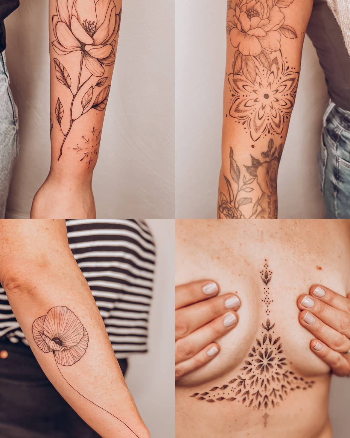 Hallo und schön dass du da bist! ☺️ Mein Name ist Jessi, 31 Jahre, verheiratet und gesegnet mit einer wundervollen Tochter. Ich freue mich sehr, dir etwas Gutes tun zu können. Ob eine professionelle Massage, ein wunderschönes Tattoo oder Permanent Make Up. Such dir deinen Lieblingstermin aus und komm bald vorbei 🫶🏼 Bei Tattoos bitte ich dich, erst mit mir zu schreiben oder zu telefonieren bevor du buchst, damit ich einschätzen kann wie lange ich für dein Wunschtattoo brauche. Falls du dir noch nicht ganz schlüssig bist, was du möchtest, wie oder wohin dein Tattoo soll oder du noch Fragen zu Permanent Make Up hast, dann buch dir einfach ein Beratungsgespräch! Wenn dir nach Buchung etwas dazwischen kommt und du deinen Termin nicht wahrnehmen kannst, melde dich rechtzeitig. 24h vorher nicht abgesagte Termine werden mit 50% in Rechnung gestellt.