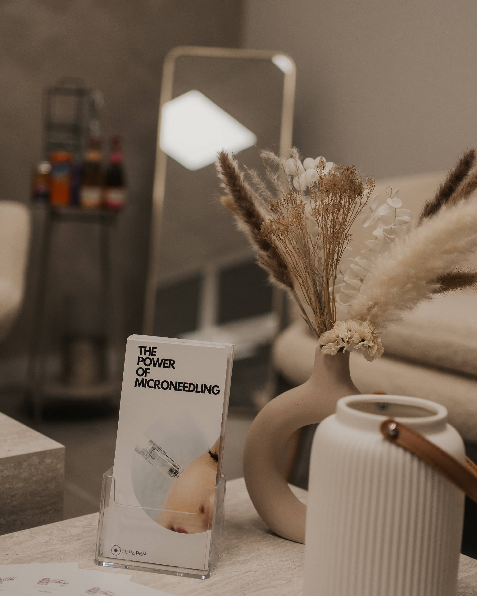 Ein Ort der Ruhe und Ästhetik – in meinem Studio erwartet dich ein minimalistisches Ambiente mit warmen Naturtönen, sanftem Licht und liebevollen Details. Hier kannst du abschalten, ankommen und dich rundum wohlfühlen.