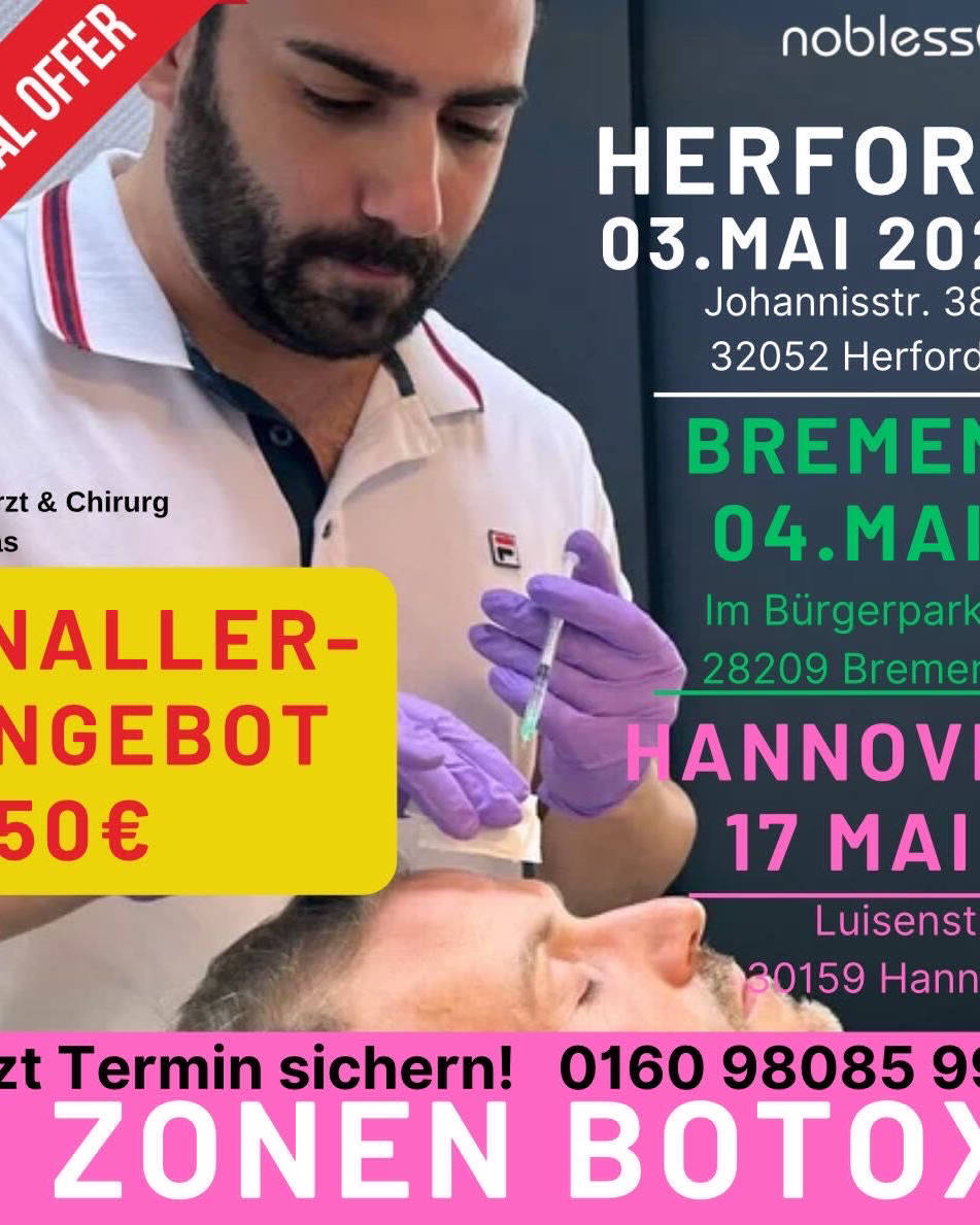 Herzlich willkommen Fakten Die Erfüllung der Wünsche und Vorstellungen unserer Patienten ist unsere kompromisslose Leidenschaft, die uns täglich antreibt. Aktuelle Angebote / Termine täglich Oberärztin E. Abas Herford 03. Mai HERFORD Oberarzt & Chirurg Feras 04. Mai BREMEN im Bürgerpark 1 17. Mai HANNOVER 29. Mai BERLIN