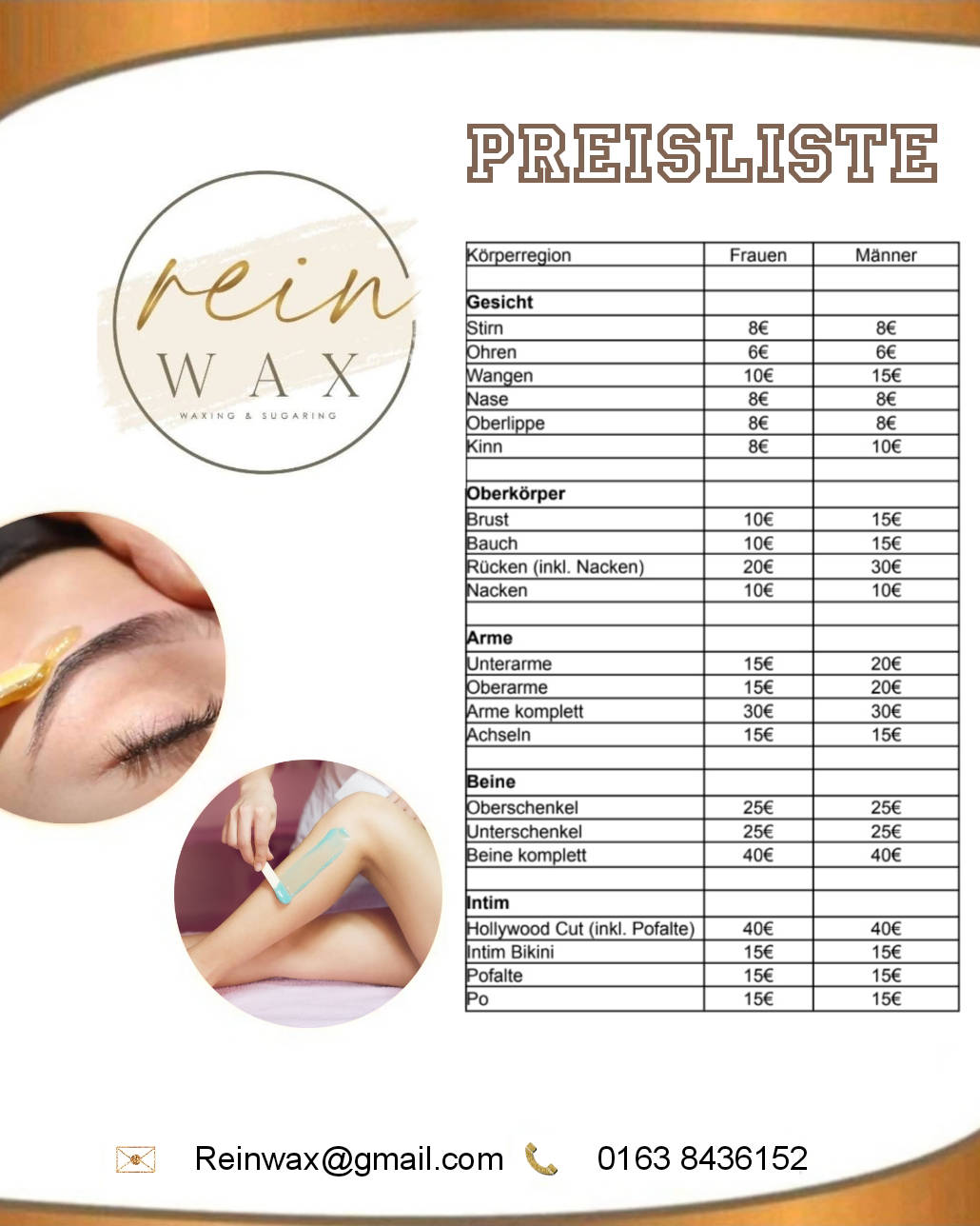 Hi, ich bin Ina, 31 Jahre Alt. Ich bin Zertifizierte, Ausgebildete, geprüfte Depiladora, geprüfte und Zertifizierte Massagetherapeutin. Nach meinem Besuch einer Kosmetikschule zur Depiladora in Ihringen arbeitete ich mehere Jahre in meinem Waxing Homestudio. Ich habe viel Erfahrung gesammelt im Bereich Haarentfernung und arbeite nur mit Heißwachs, Warmwachs und Zuckerpaste. 2025 habe ich meine Massagetherapeuten Ausbildung abgeschlossen (Wellnessmassage, Sportmassage, Triggerpunktbehandlung, Taping und Mobilemassage) Ich liebe es, meine Kund/innen glücklich zu machen und versuche, immer auf dem neusten Stand zu sein.